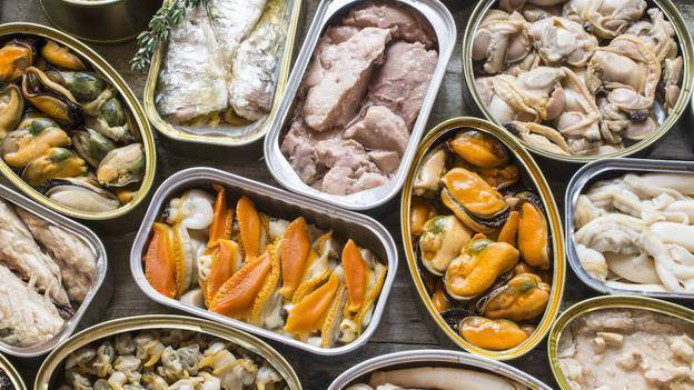 Hay una amplia variedad de conservas de pescado: atún, bonito, ventresca, sardinas, anchoas, caballa, caballitas, chicharrillos, etc. También las conservas de marisco son excelentes, como los mejillones y las navajuelas.